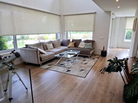 La carpintería es con rotura de puente térmico oscilobatiente y suelo de madera de roble.